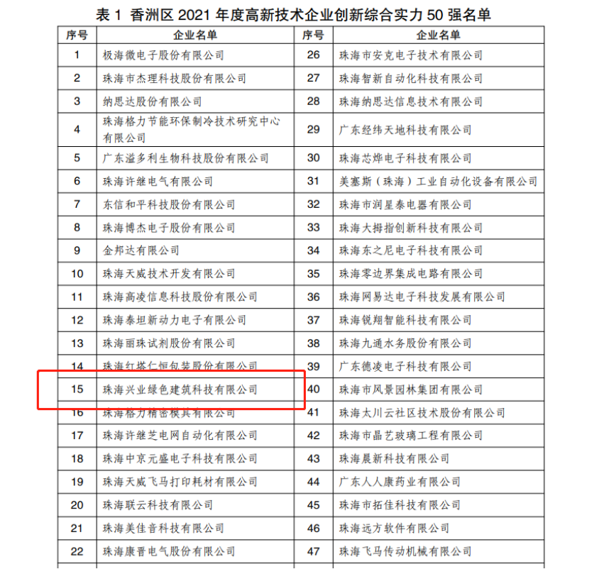 水發(fā)興業(yè)綠建公司名列珠海市香洲區(qū)2021年度高企百強第15位