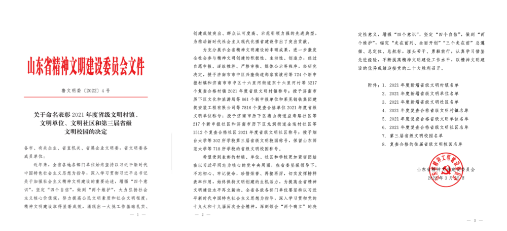 3月15日,山東省精神文明建設委員會印發《關于命名表彰2021年度省級文明村鎮、文明單位、文明社區和第三屆省級文明校園的決定》,水發能源集團被正式授予省級文明單位榮譽稱號。 ?